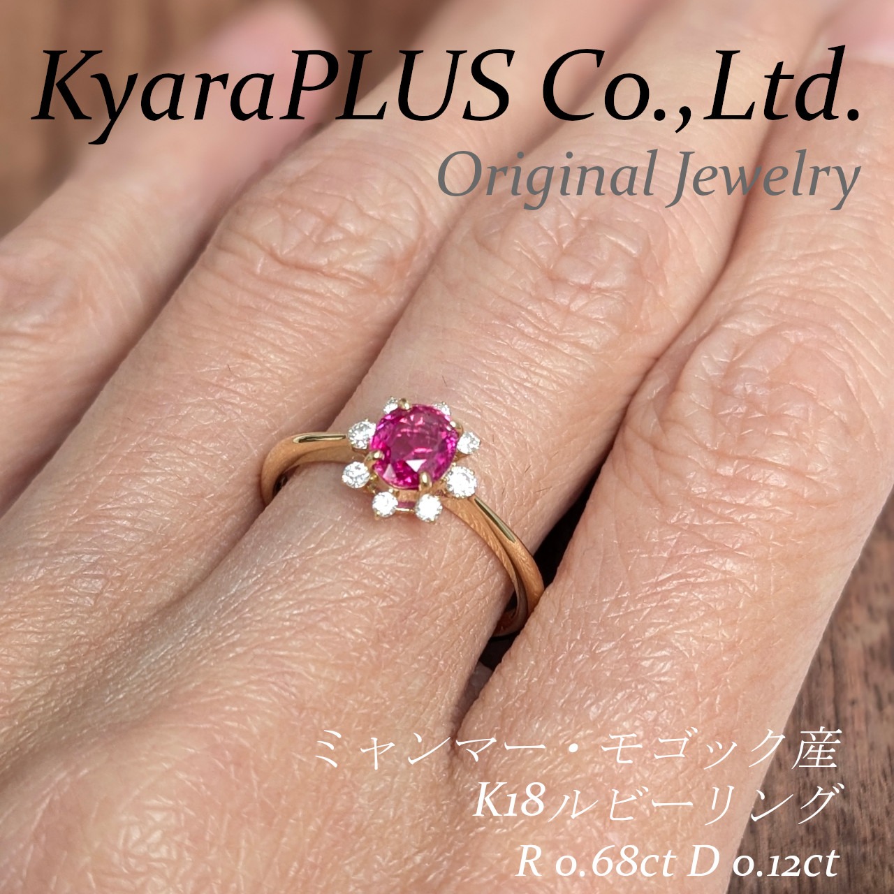 まるで小さな線香花火がパチパチと弾ける瞬間を閉じ込めたかのように、光のスパークが印象的なリング。センターには、わずかにピンク味を帯びた非加熱ルビーをセットしています。鮮やかに放たれる“強赤色蛍光”は、0.68ctというサイズを感じさせないほどの存在感。ルビーの鮮烈な輝きを引き立てるように、イエローゴールドに自然に溶け込む、ほんのり黄味を帯びたメレダイヤがさりげなく添えられ、全体に華やかさとリズムを与えています。