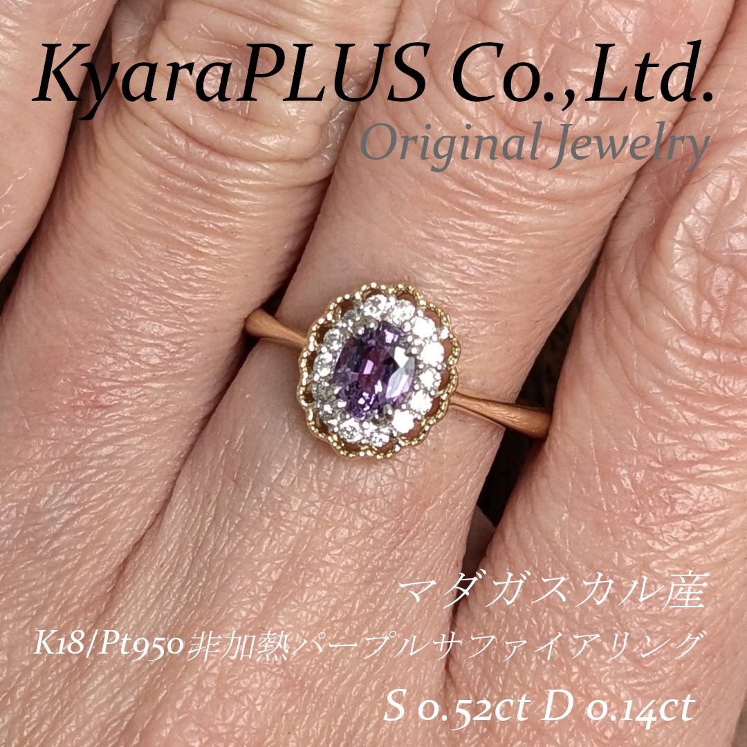特にこちらの、ゴールドを基調に石座のみプラチナを用いたコンビタイプは、中石の存在感を最大限に引き立てるための設計。