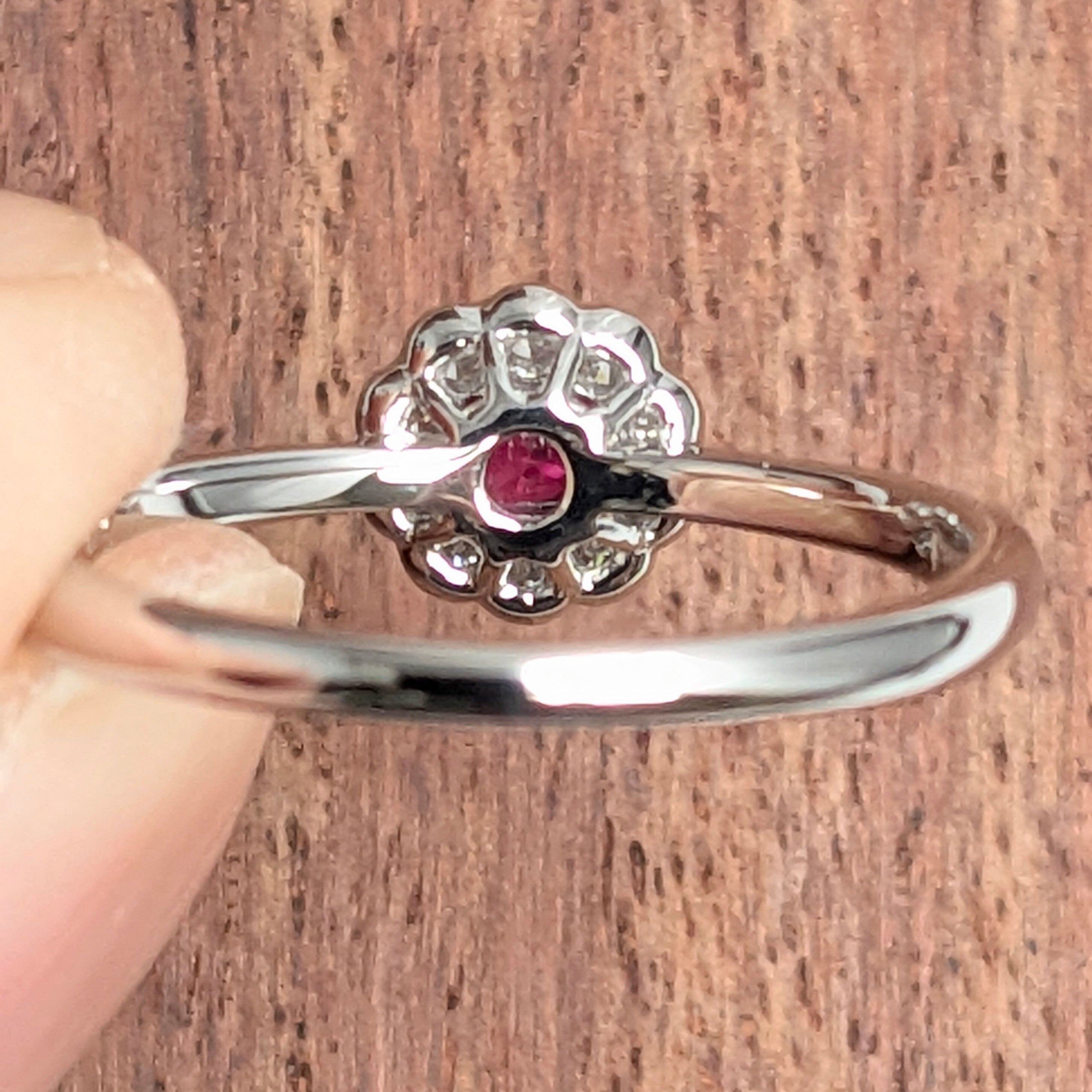 Pt950非加熱ルビーリング グリーンランド産 非加熱ルビー 0.15ct ダイヤモンド 0.09ct【PRO207083】