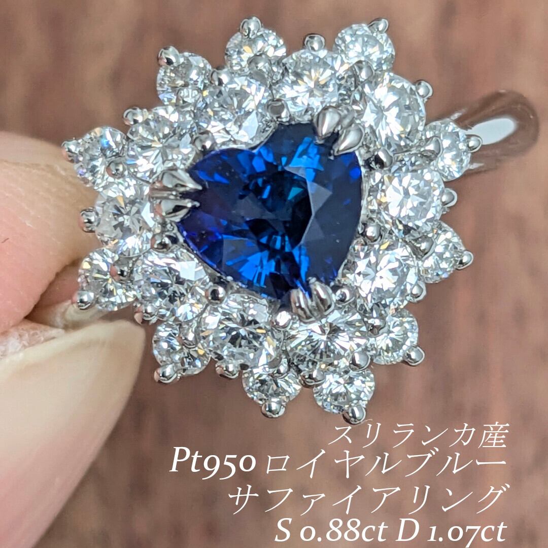 Pt950ロイヤルブルーサファイアリング スリランカ産 サファイア 0.88ct ダイヤモンド 1.07ct【PRO206612】
