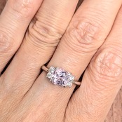 可憐な桜色に煌めく、クッションカットのスピネル。淡く儚げな色合いに、インクルージョンはありますが煌めき感の強い一粒です。その“輝き”を最大限に発揮できるよう、あえてプラチナを使用して仕立てた当店のオリジナル。中石同様に強いブリリアンスを持った4粒のダイヤモンドを使用することで、さりげなく、でもこれ以上ないエレガントな美しさを発揮しています。とても美しい一品です。