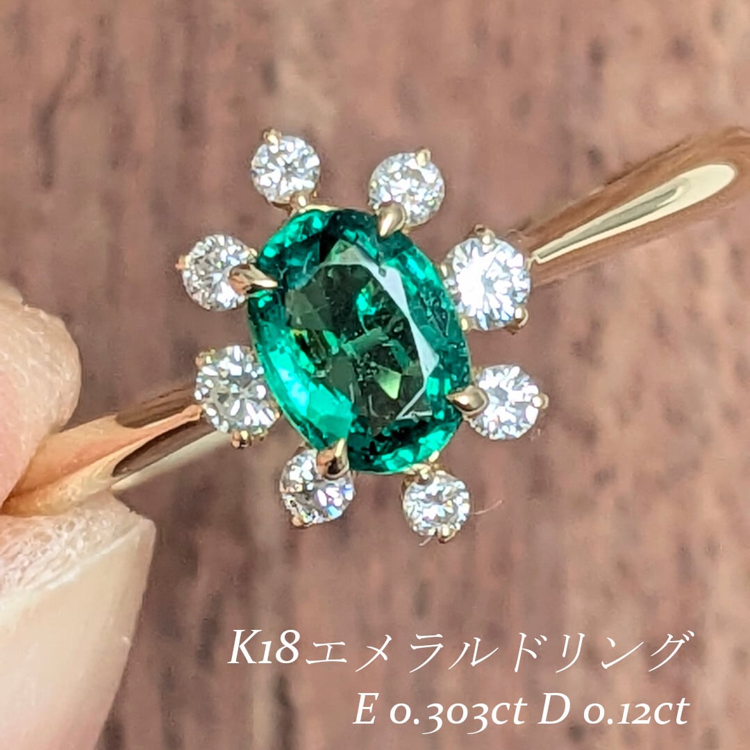 K18エメラルドリング エメラルド 0.303ct ダイヤモンド 0.12ct【PRO207645】