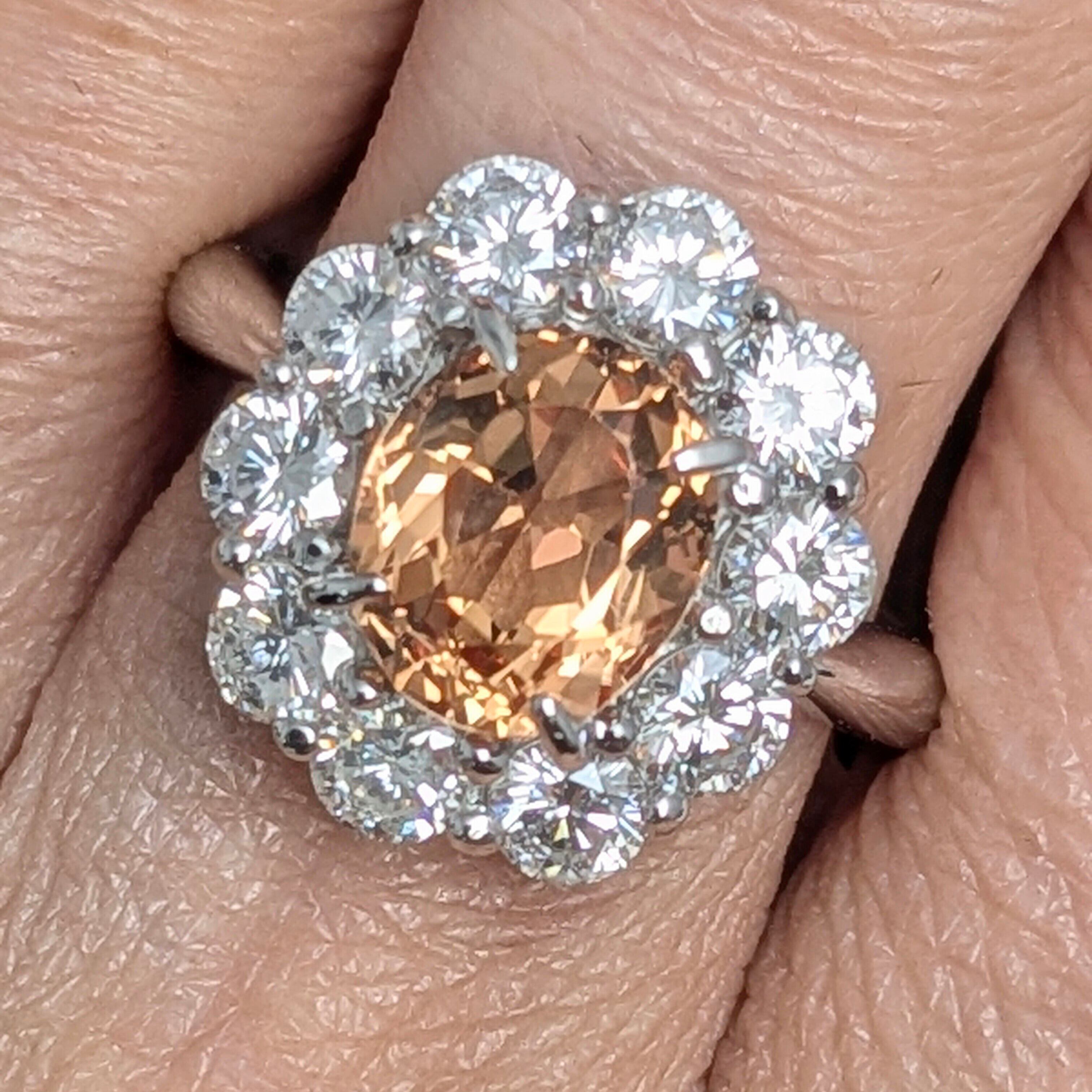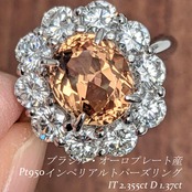 Pt950インペリアルトパーズリング ブラジル・オーロプレート産 インペリアルトパーズ 2.355ct ダイヤモンド 1.37ct【PRO206881】