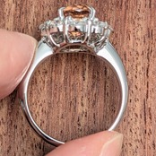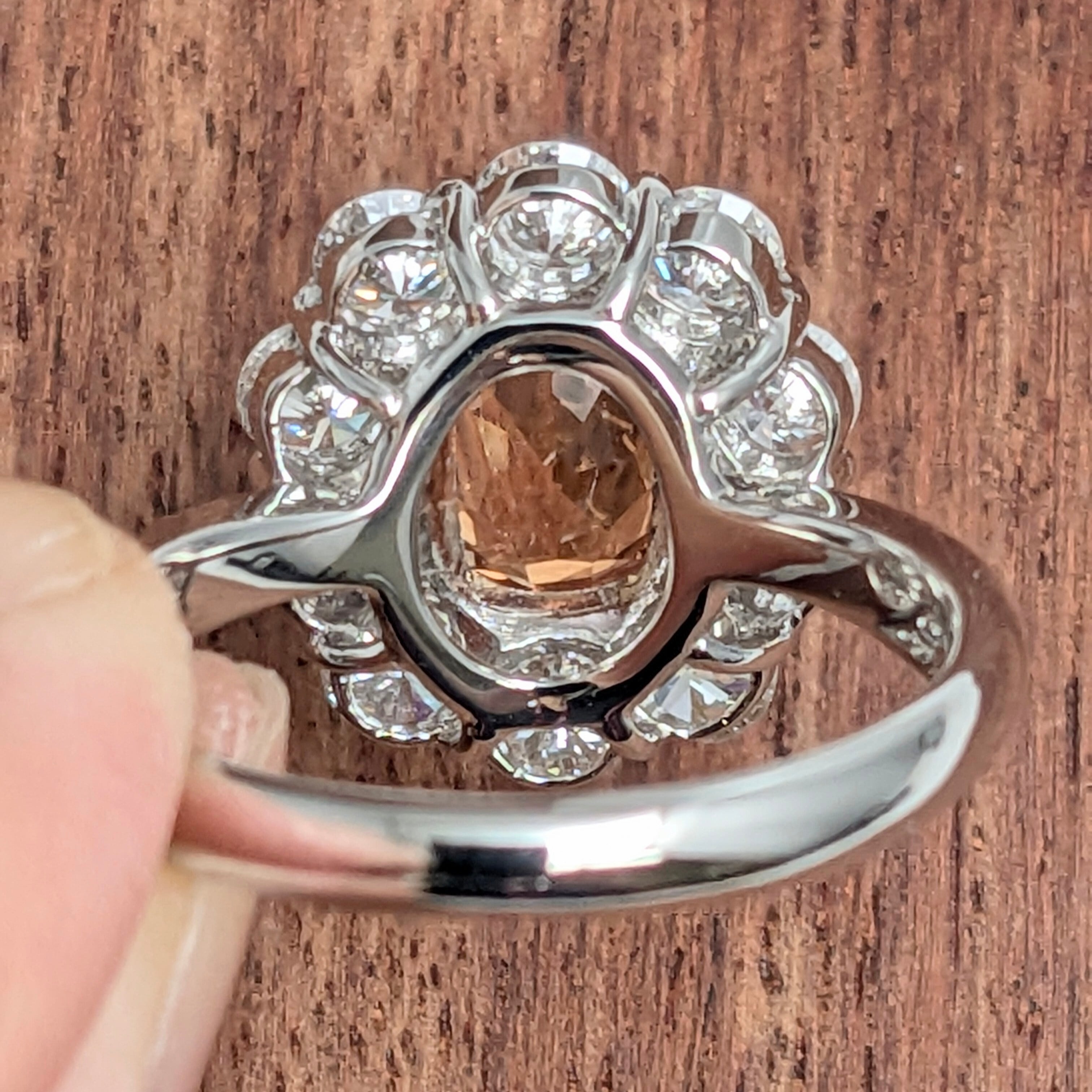 インクルージョンがほとんど入っていない、温かみのあるオレンジカラーが煌びやかなリング。メレダイヤの部分はインクルージョンが入ってはいますが、輝きの強い粒を1ピース、1ピース厳選したものを使用しています。太陽が満面の笑顔で花開いたような、おおらかな美しさを放つリング。「インペリアル(皇帝)」とはなんとも堅苦しい名前が付いていますが、実際の輝きはとてもエレガントで艶やかな女性らしさです。