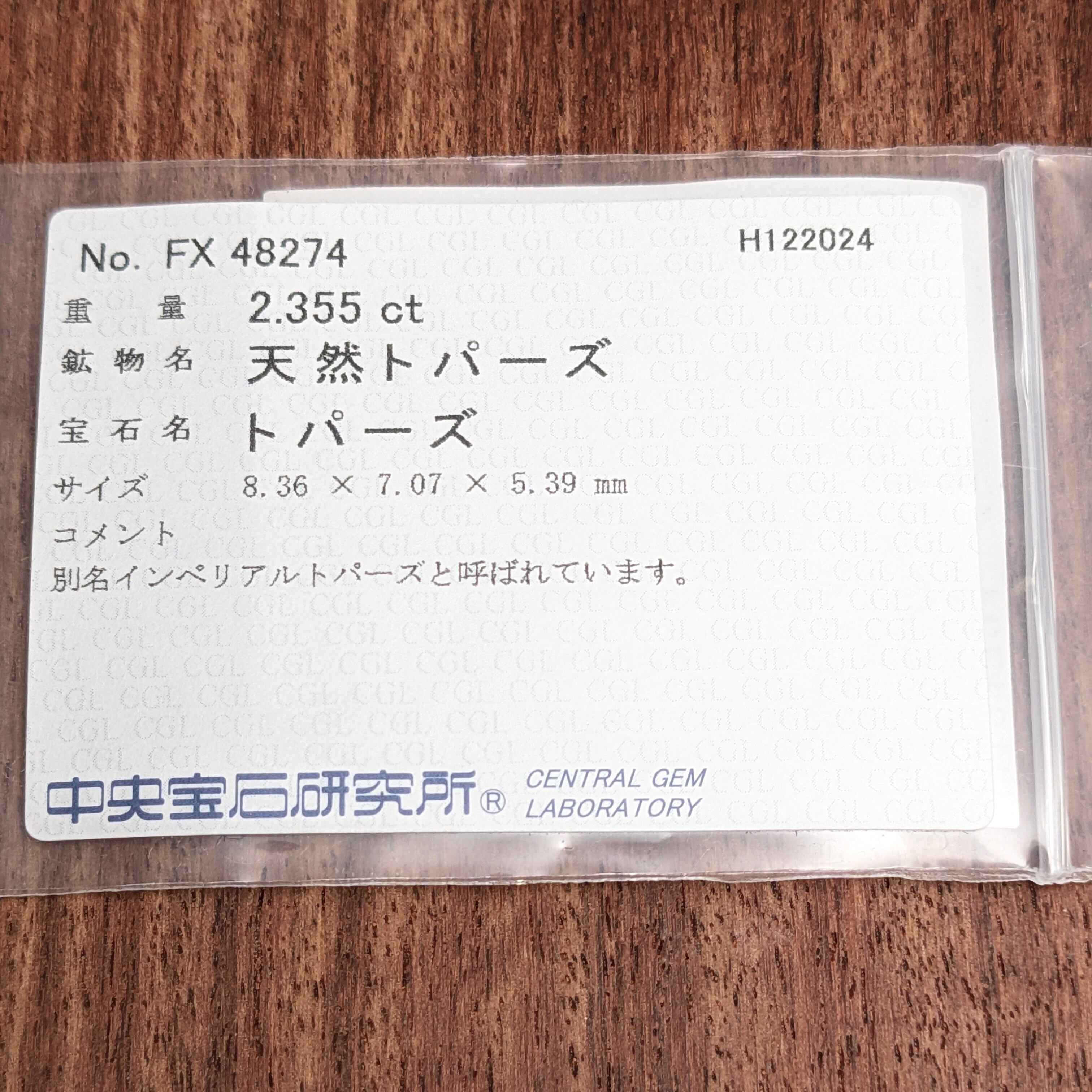 【主石】:インペリアルトパーズ 2.355ct