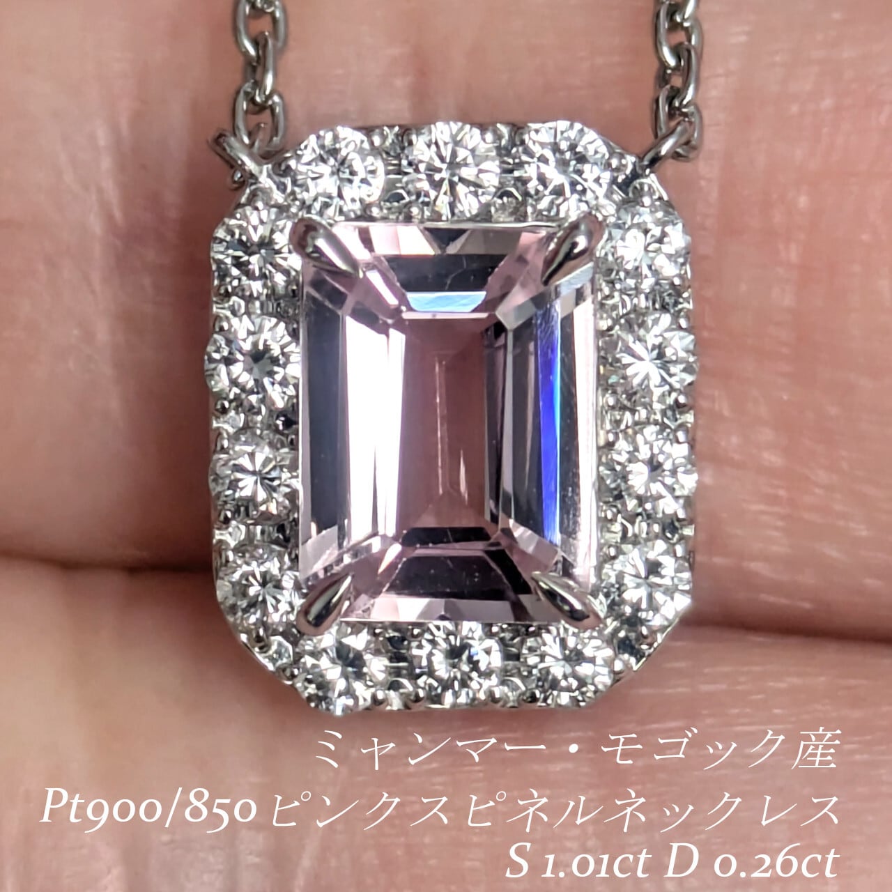 Pt900/850スピネルネックレス ミャンマー・モゴック産 スピネル 1.01ct ダイヤモンド 0.26ct【PRO207762】