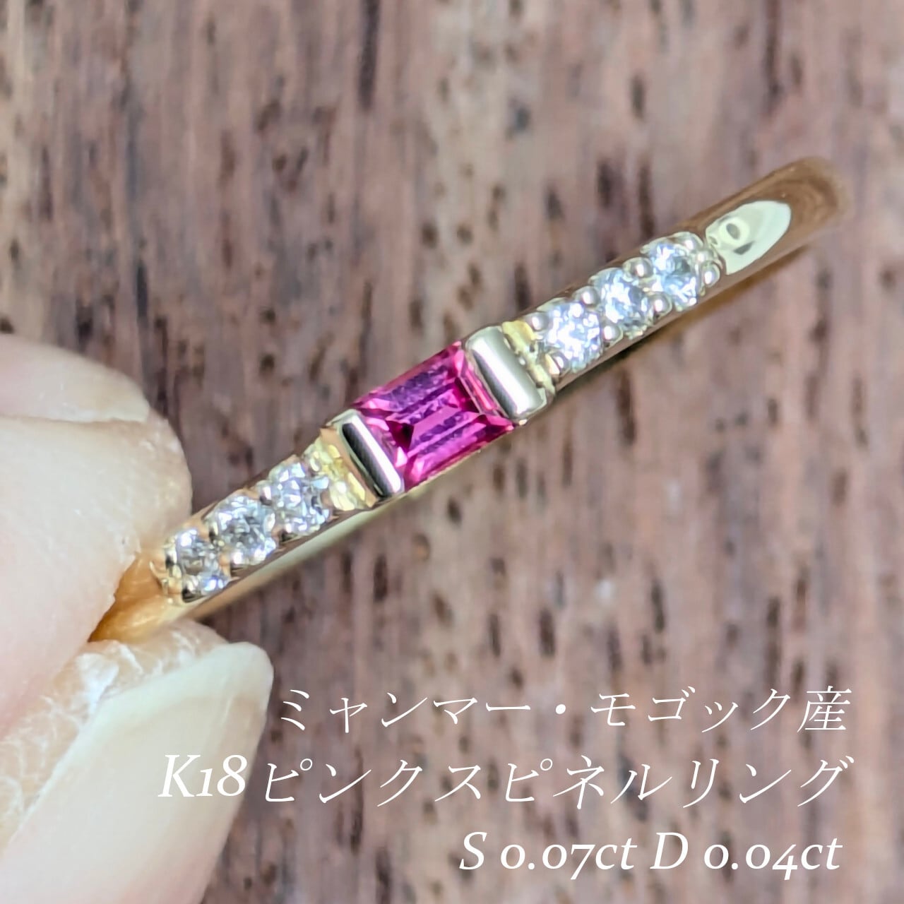 K18ピンクスピネルリング ミャンマー・モゴック産 ピンクスピネル 0.07ct ダイヤモンド 0.04ct【PRO207873】