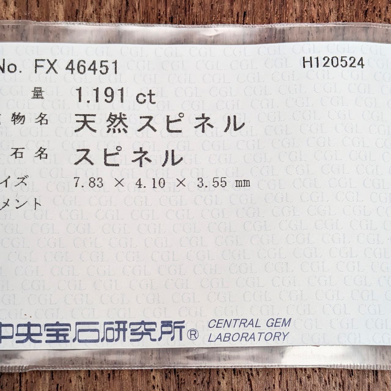 【主石】:スピネル 1.191ct