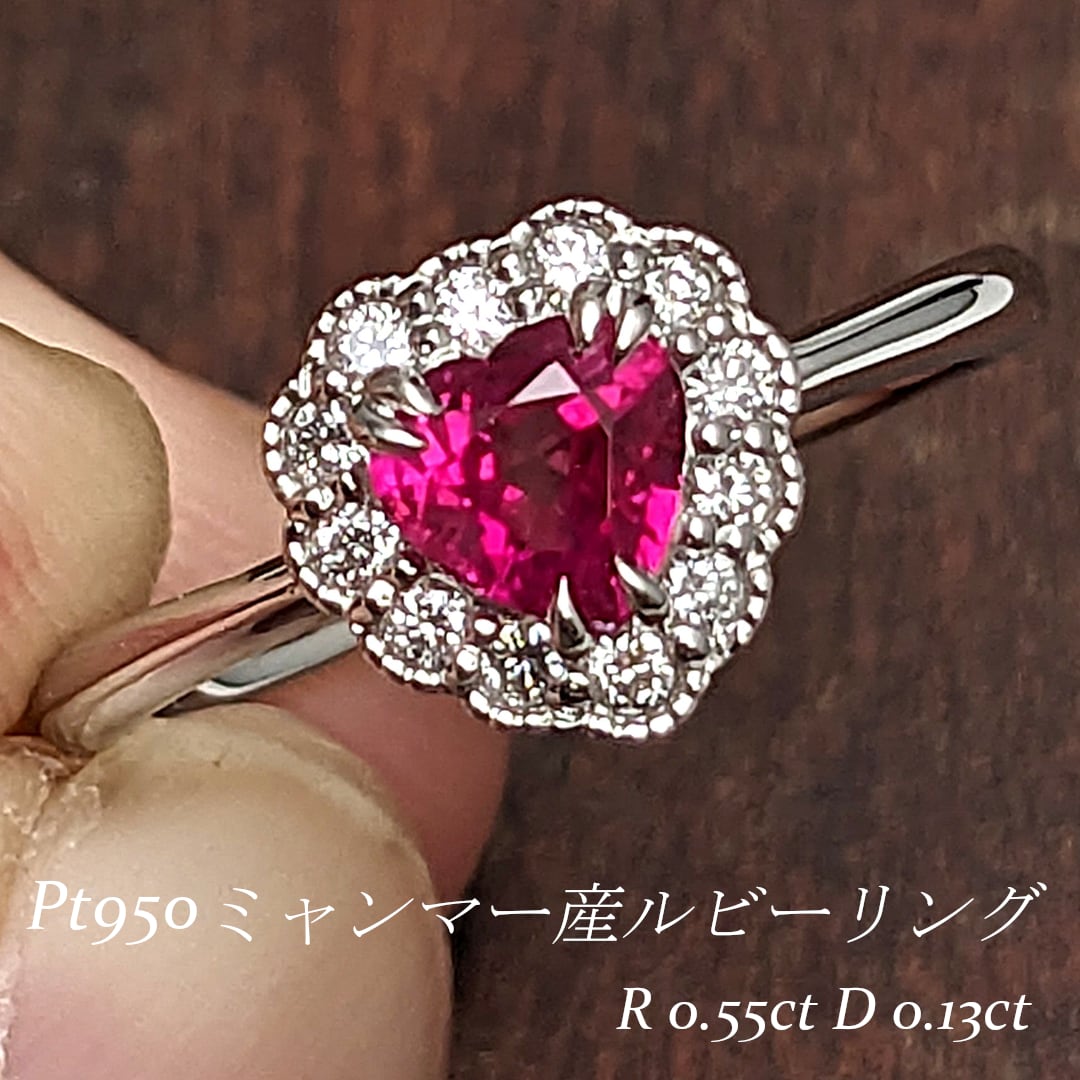 Pt950ルビーリング ミャンマー産 ルビー 0.55ct ダイヤモンド 0.13ct【PRO205895】